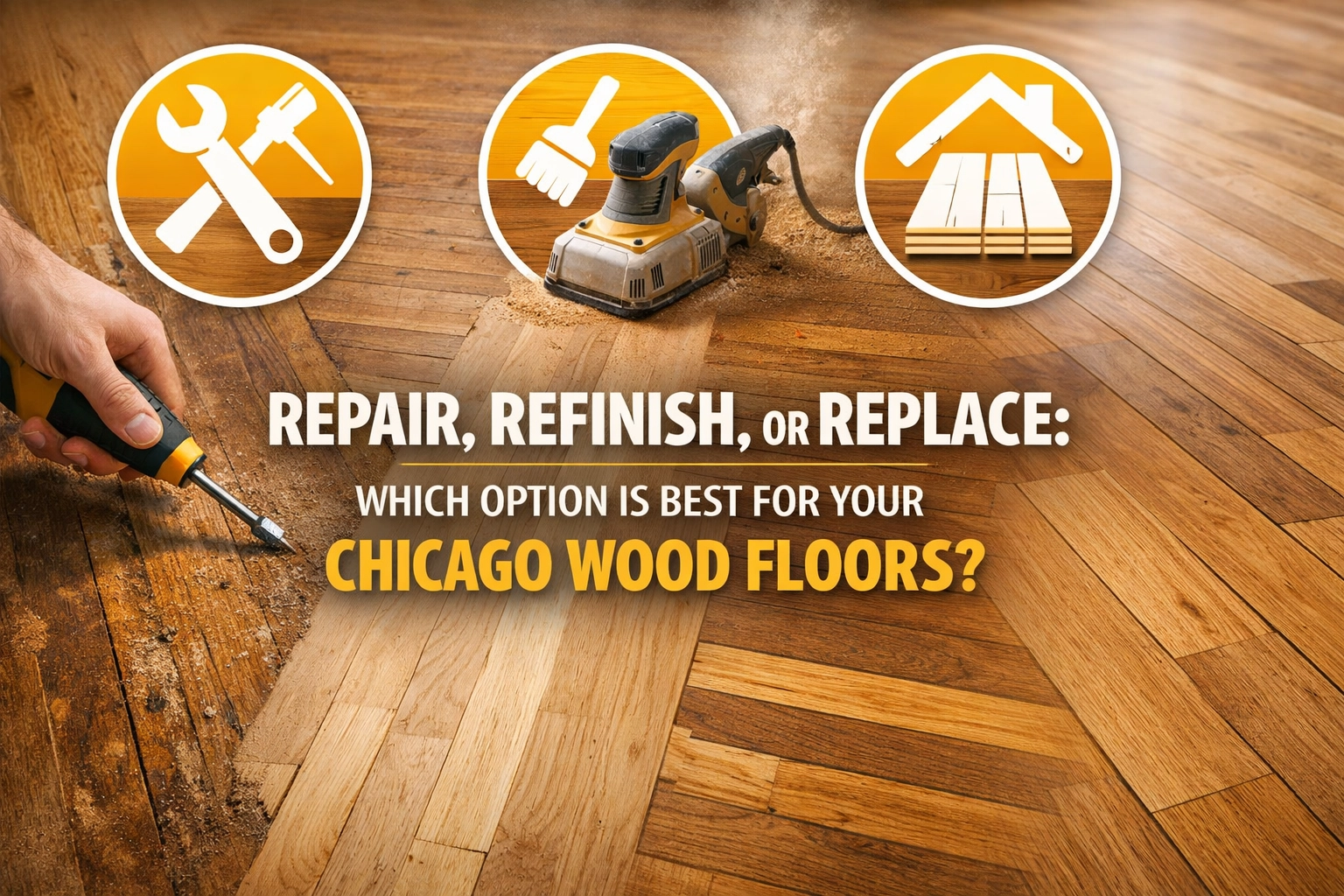 Refinishing is the sweet spot for most Chicago hardwood floor repair projects. It addresses cosmetic damage while preserving your existing wood, and it costs about 50-70% less than replacement.